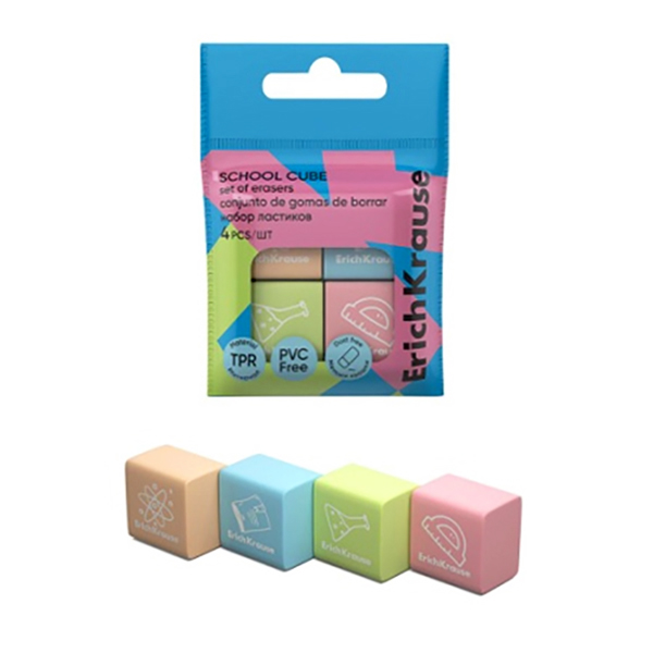 Ластик ERICHKRAUSE School cube Квадрат 4шт