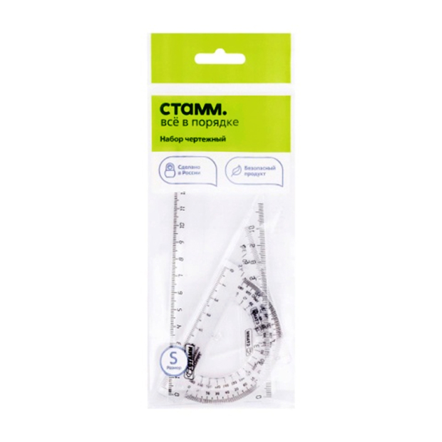 Набор геометрический прозрачный из высококачественного пластика поможет в учебе, а так же пригодиться для бытовых нужд. Точная миллиметровая шкала линеек поспособствует развитию начальных навыков черчения. В комплекте 4 предмета: линейка с односторонней шкалой 16см, угольник 7см/45°, угольник 11см/30°, транспортир 180°/8см.