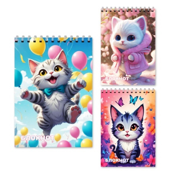 Блокнот на гребне, 40 листов, формат А5, клетка, плотность 60 гр/м2. Внутренний блок - высококачественная белая офсетная бумага. Обложка - мелованный картон. Крепление - металлическая евроспираль сверху.