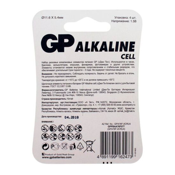 Батарейка GP Cell A76F-2CRU4 40/1920