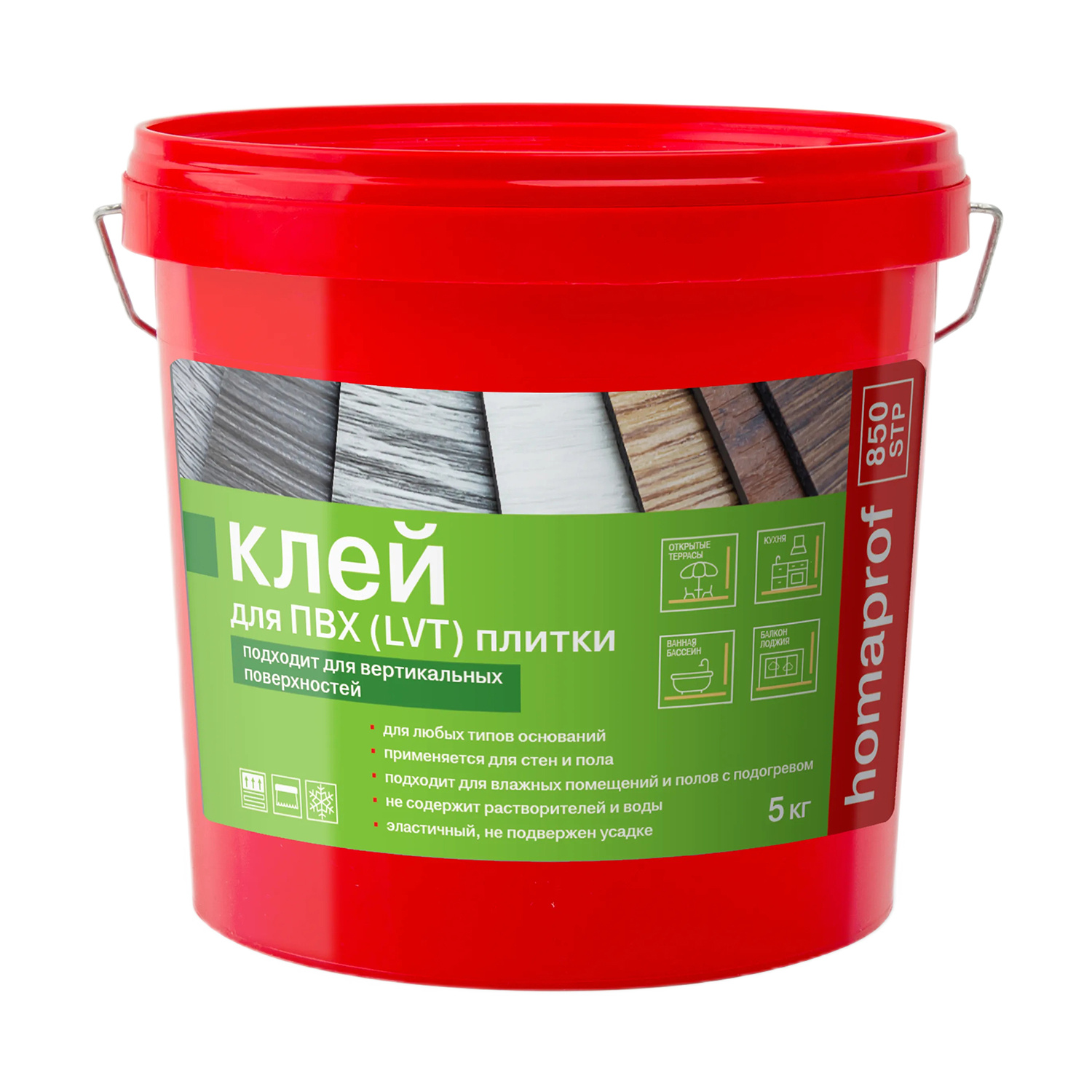 Клей Homaprof 850 STP для модульных ПВХ-покрытий (LVT,кварц-винил) на вертикальные и горизонтальные поверхности. Предназначен для приклеивания LVT / SPC покрытий на пол и стены, в том числе в помещения с повышенной влагой. Имеет высокую стартовую липкость, что упрощает процесс монтажа.