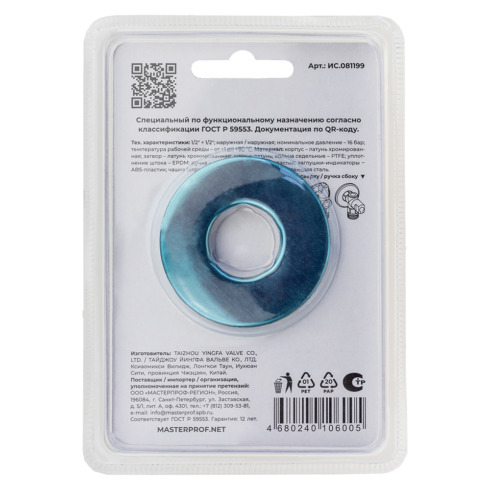 Кран шаровый MASTERPROF Угловой НР-НР 1/2" ИС.081199