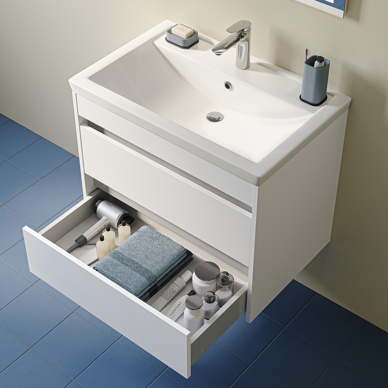 Вместительная подвесная тумба для ванной Zodiac X с умывальником и двумя выдвижными ящиками – новая версия коллекции-бестселлера Zodiac, которую мы обновили согласно актуальным требованиям дизайна и функционала. Универсальный стиль идеально впишется в любой интерьер.