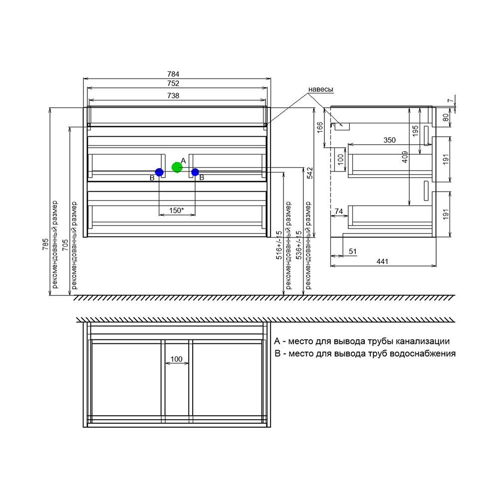 Материал фасада – МДФ с покрытием ПВХ-плёнкой, материал боковин – влагостойкий ЛДСП. Такое качественное исполнение обеспечит долгий срок службы мебели во влажном помещении ванной (при соблюдении рекомендаций по уходу).