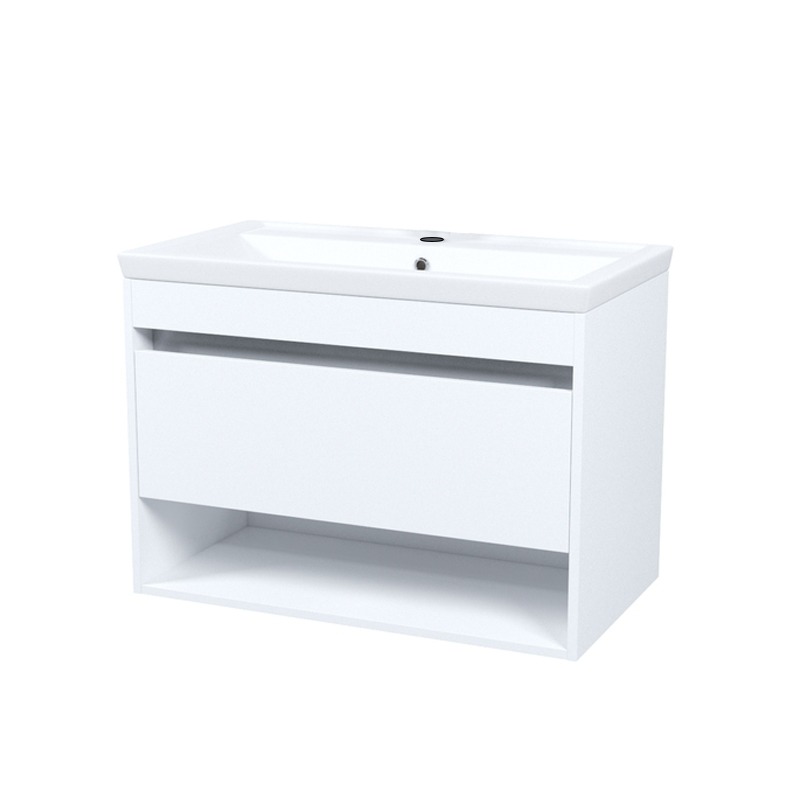 Подвесная тумба для ванной Zodiac X с умывальником, выдвижным ящиком и открытой полкой – новая версия коллекции-бестселлера Zodiac, которую обновили согласно актуальным требованиям дизайна и функционала. Универсальный стиль идеально впишется в любой интерьер, а открытое хранение визуально облегчит пространство ванной, наполнив его воздухом.