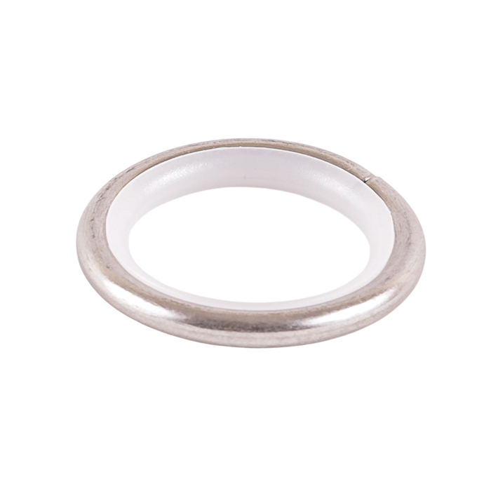 Комплект металлических колец с пластиковыми вставками предназначен для металлических карнизов с трубой диаметром 16 мм. Покрытие сатинового цвета придает аксессуарам элегантный и утончённый вид, гармонично вписываясь в большинство интерьерных решений. Рекомендуемое количество колец – 10 штук на погонный метр, это обеспечит равномерное распределение нагрузки и плавное скольжение тканей.