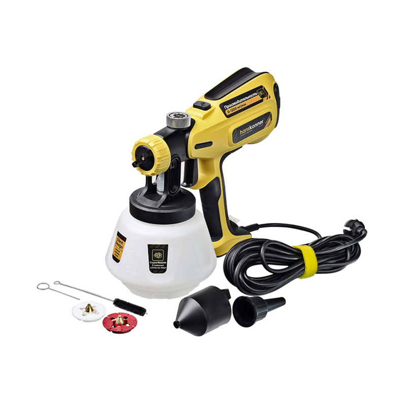Hanskonner HSG9680 – универсальный электрический краскопульт. Отлично подходит для покраски фасадов зданий и ограждений, а также для проведения внутренних ремонтных работ. Позволяет эффективно работать в том числе и с наиболее вязкими материалами. Модель оснащена мощным 800 Вт электромотором и демонстрирует высокую, одну из лучших в классе, производительность в 1200 мл/мин.