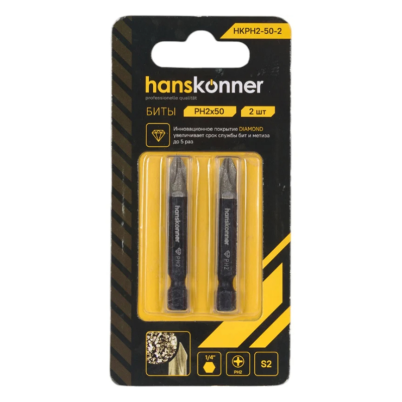 Биты HANSKONNER Diamond PH2 50мм HKPH2-50-2