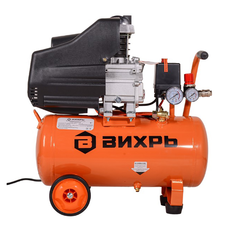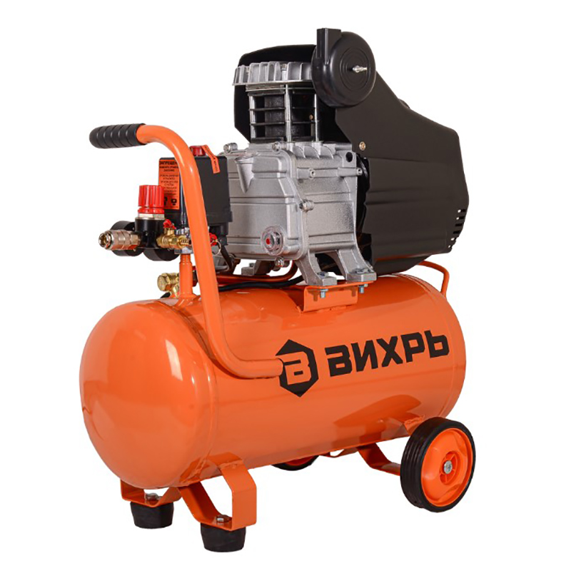Для простой и быстрой транспортировки Вихрь КМП-230/24 имеет колеса и ручку. Специальные накладки на ножках обеспечивают антивибрационный эффект, а наличие разъемов EURO-рапид позволяет легко подключать различное пневматическое оборудование. Для контроля работы компрессора применяются два манометра, установленные на входе и выходе.