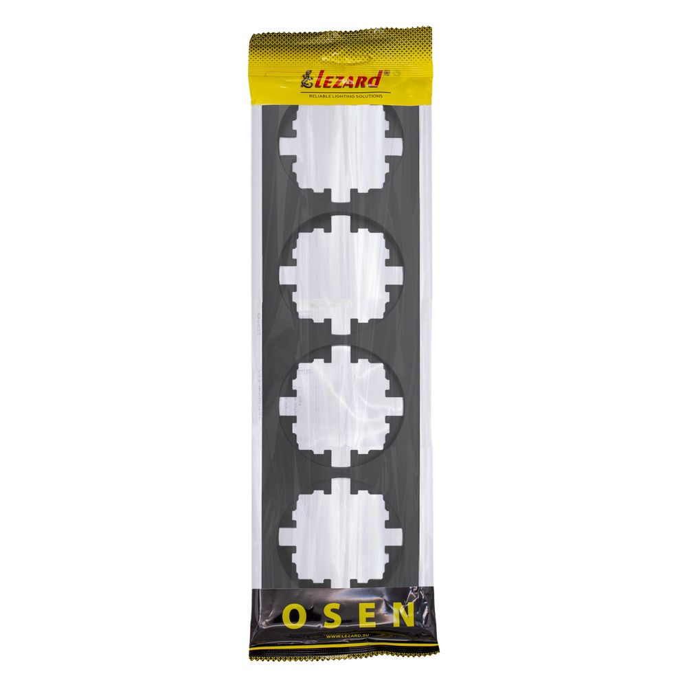 Рамка 4-местная OSEN горизонтальная квадратная чёрный бархат LEZARD 743-4200-149 - cтильное сочетание современного дизайна и функциональности. Особенность серии — возможность выбора формы рамки: классическая квадратная или эстетичная круглая, что позволяет гармонично вписать изделие в любой интерьер. Огнеупорный пластик (устойчив к температуре 850 °C). Защита пальцев (во время монтажа нет возможности касания к каким-либо токопроводникам).