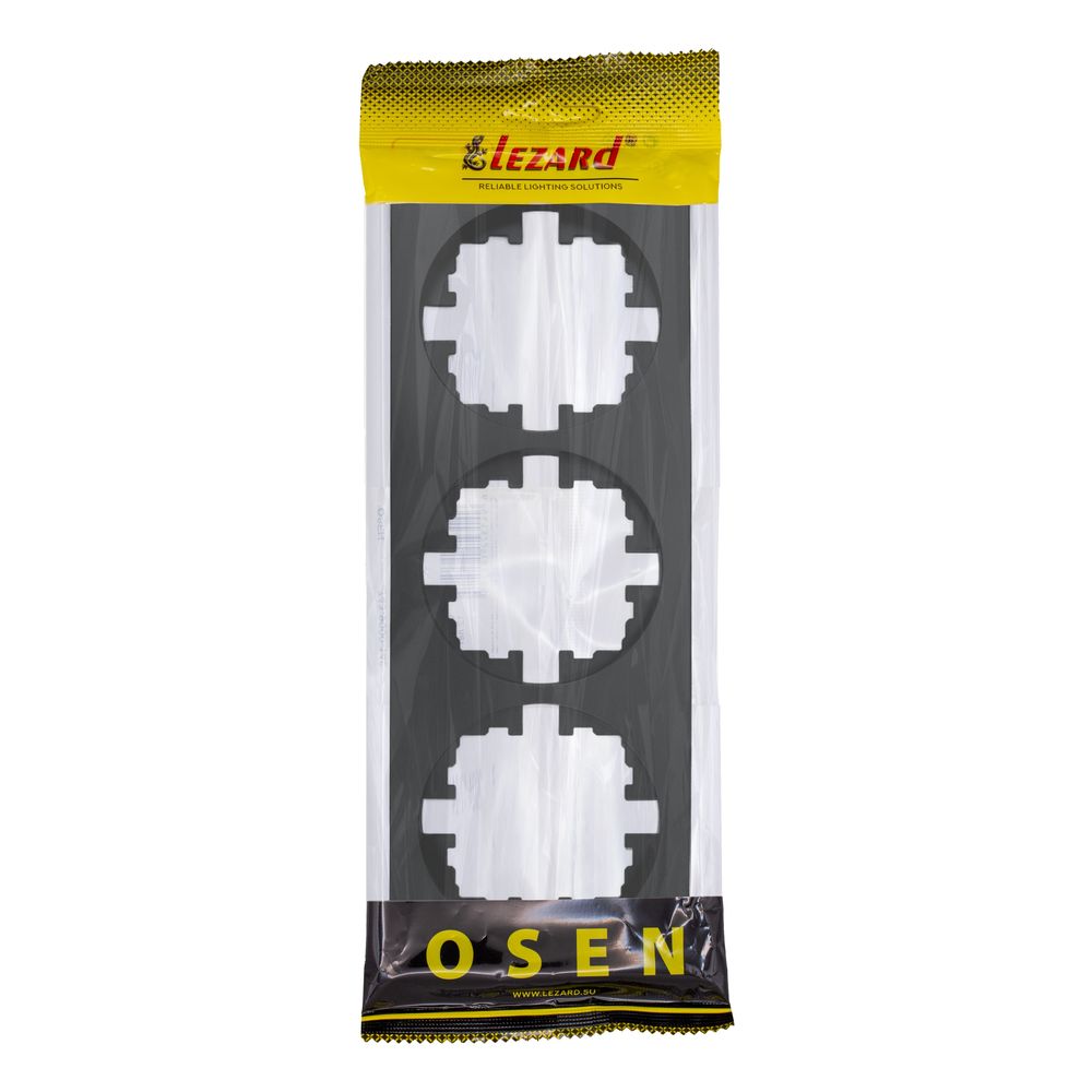 Рамка 3-местная OSEN горизонтальная квадратная чёрный бархат LEZARD 743-4200-148 - cтильное сочетание современного дизайна и функциональности. Особенность серии — возможность выбора формы рамки: классическая квадратная или эстетичная круглая, что позволяет гармонично вписать изделие в любой интерьер. Огнеупорный пластик (устойчив к температуре 850 °C). Защита пальцев (во время монтажа нет возможности касания к каким-либо токопроводникам).