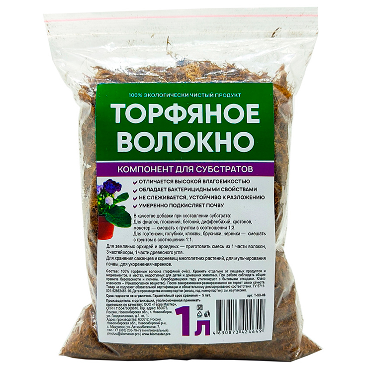 Торфяное волокно БИОМАСТЕР Т-ХХ-08 1л