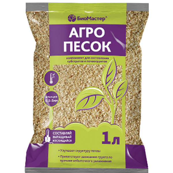 Агропесок БИОМАСТЕР 1л — универсальный природный разрыхлитель для улучшения структуры тяжелых почв. Повышает воздухо- и влагопроницаемость грунта, предотвращает образование корки и застой воды. Идеально подходит для добавления в грунтовые смеси при выращивании рассады, комнатных растений и для глинистых садовых участков. Способствует развитию сильной корневой системы. Экологически чистый продукт без химических добавок. Фасовка 1 литр.