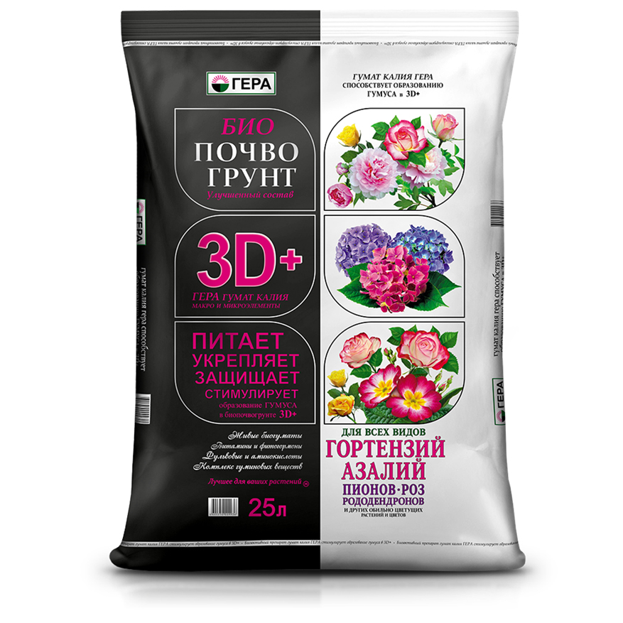 Почвогрунт ГЕРА 3D+ для гортензий, пионов, азалий 25л