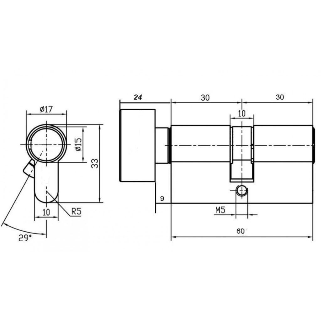 Ключевой цилиндр RUCETTI предназначен для двустороннего запирания дверного полотна. Применяется в санузлах, ванных комнатах и других помещениях. Ключевой цилиндр повышенной секретности для двери вставляется в замок или защелку для закрытия ключом с одной стороны и поворота кноба с другой, дополняя общую конструкцию. Срок службы: не менее 5 лет. Корпус изготовлен из высококачественной латуни.
