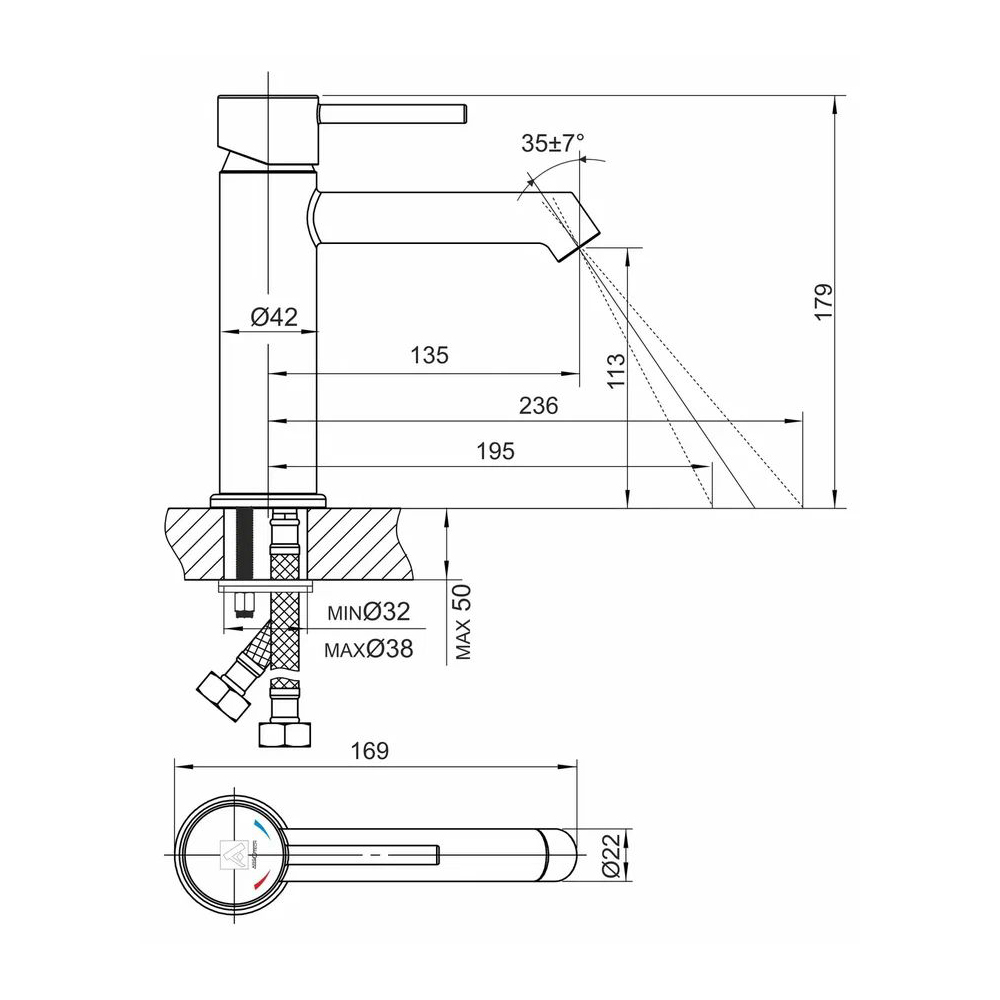 Современный смеситель для раковины ARGOtech 35-44 JAVA с керамическим картриджем d 35 мм. Смеситель изготовлен из высококачественной латуни, безопасной для здоровья и долговечной в использовании. Смеситель предназначен для установки на раковину в ванной и укомплектован всем необходимым для быстрого монтажа: гибкая подводка 45 см, крепеж двойная шпилька , сантехнические прокладки.