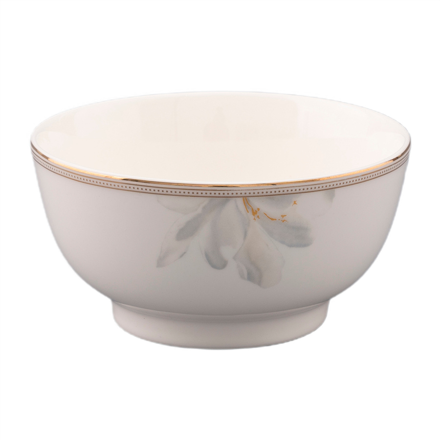 Элегантный салатник из высококачественного фарфора станет прекрасным дополнением к вашему столу. Его классический дизайн с золотистой окантовкой и изящным узором придаст любому блюду изысканный вид. Фарфоровая поверхность легко моется и устойчива к царапинам, что обеспечивает долговечность и удобство в использовании. Этот салатник станет не только функциональным предметом, но и украшением вашей кухни.