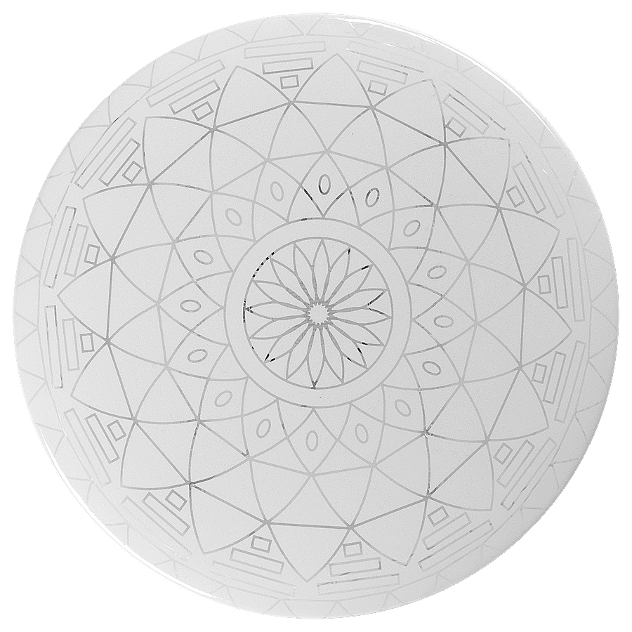 Корпус светильника выполнен из прочного пластика, а декоративный рисунок на плафоне добавляет элегантности. Светильник монтируется на потолок с помощью монтажной планки, что делает его установку простой и удобной. Создает комфортную атмосферу для повседневного использования.