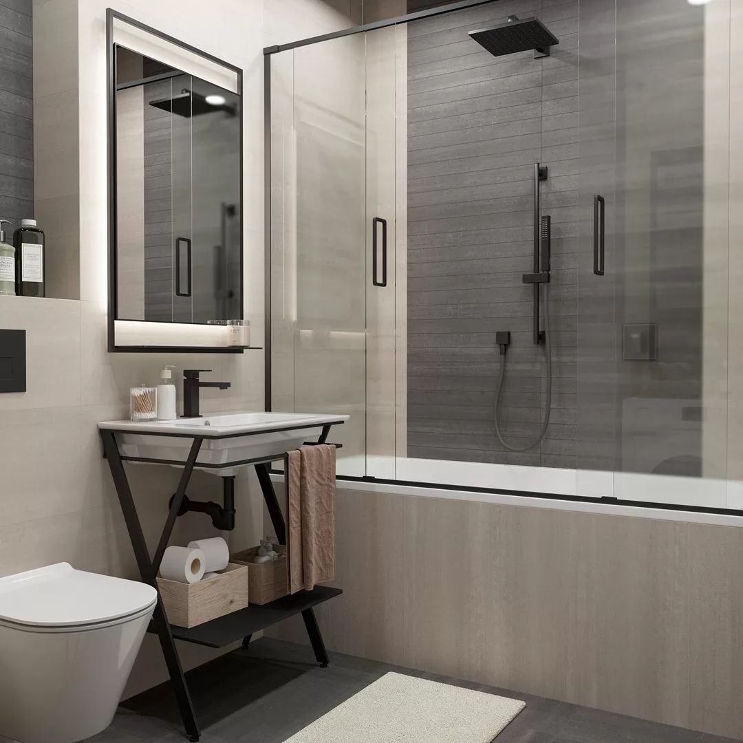 Бетон — поистине универсальный материал, в последнее время активно развивающийся в качестве отделочного решения для частных и общественных интерьеров. Керамогранит и керамическая плитка делают применение бетона более удобным, а само бетонное покрытие значительно более стойким к внешним воздействиям. Особенно практично, когда в одной серии представлены координированные решения для пола и стены.