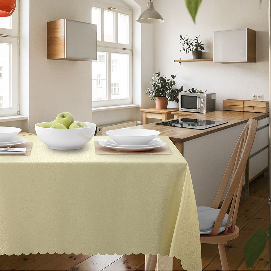 Жаккардовое переплетение дает новую жизнь волокнам, и скатерть приобретает новые преимущества: Высокая прочность, полотно не растягивается и не деформируется, потому эти скатерти имеют долгий срок службы. Безупречный внешний вид — жаккардовые скатерти нельзя сравнить ни с какими другими по изысканности и благородству. Они отлично подходят как к классическому, так и ко многим современным интерьерам.
