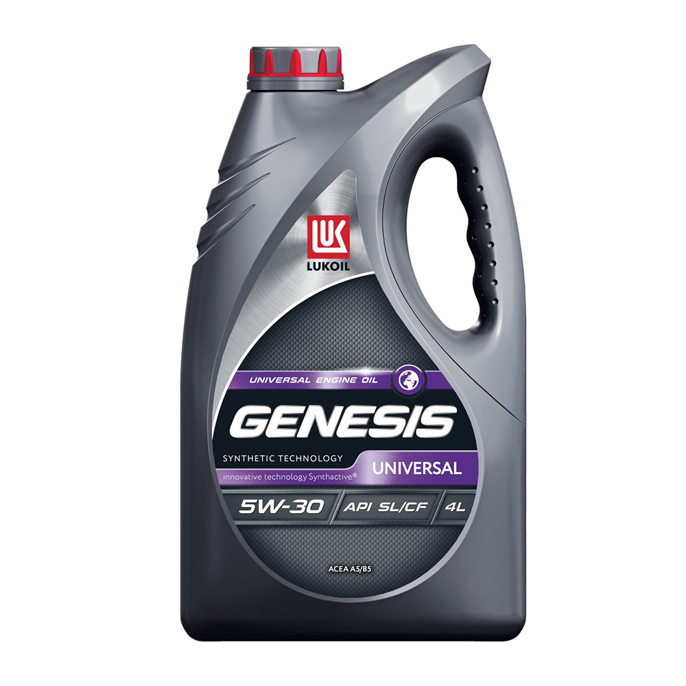 LUKOIL Genesis universal SL/CF 5W30 - моторное масло на основе синтетических технологий для бензиновых и дизельных двигателей пост гарантийных автомобилей. Производится с применением передовой технологии Synthactive. Рекомендовано к всесезонному применению в бензиновых и дизельных двигателях (без фильтров сажевых частиц - DPF) автомобилей Ford, бензиновых двигателях Renault, а также в бензиновых и дизельных двигателях KIA, Hyundai, Toyota, Nissan, Honda, Mitsubishi и других автопроизводителей, требующих использование масел уровня свойств API SL и/или A5/B5.