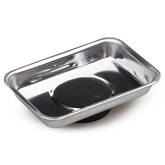 Магнитный поддон предназначен для хранения и удержания железной мелочевки. Мастера и автомеханики складируют в него крепеж, детали и мелкие инструменты, чтобы держать все под рукой и ничего не растерять. Швеи и рукодельницы используют поддон как игольницу.