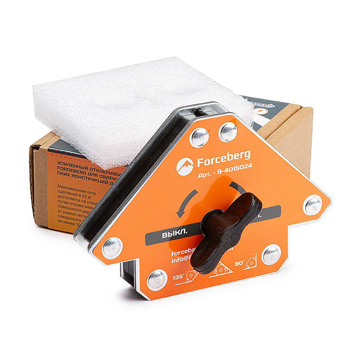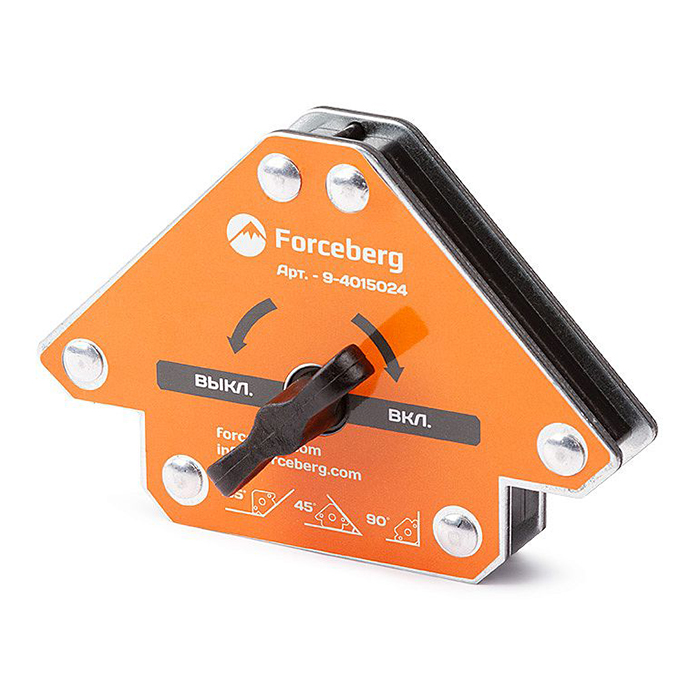 Уголок отключаемый, с рычажком переключения ВКЛ-ВЫКЛ на корпусе. Это позволяет «отключить» магнитное поле на время крепления уголка к деталям и «включить» непосредственно перед сваркой. После сварки уголок снова отключают для быстрого отсоединения от деталей и очистки от стальной стружки и пыли.