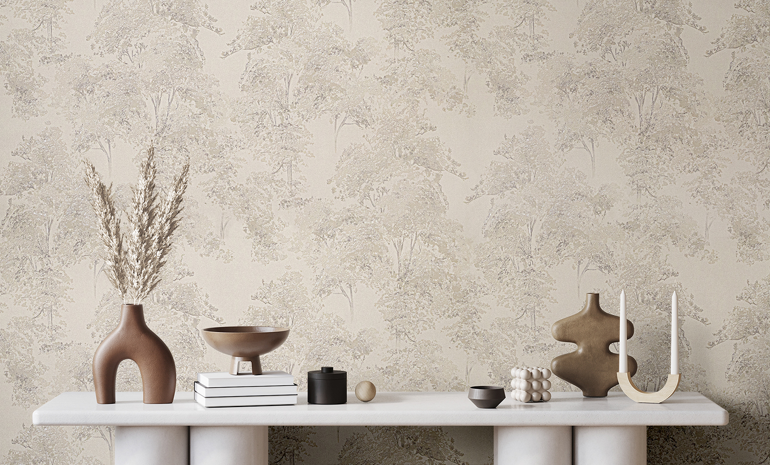 Bosco ТМ Ateliero - коллекция, где рисунок и фактура сливаются в единое художественное полотно. Фактурное полотно с богатой поверхностью визуально напоминает гобелен, но в современном, лёгком исполнении. Деревья словно вплетены в структуру, создавая визуальный рельеф и эффект объёма. На первый взгляд — утончённый монохромный орнамент. Но при ближайшем рассмотрении открываются детали: каждое дерево проработано с живописной точностью, каждый элемент словно нарисован мягкой кистью.