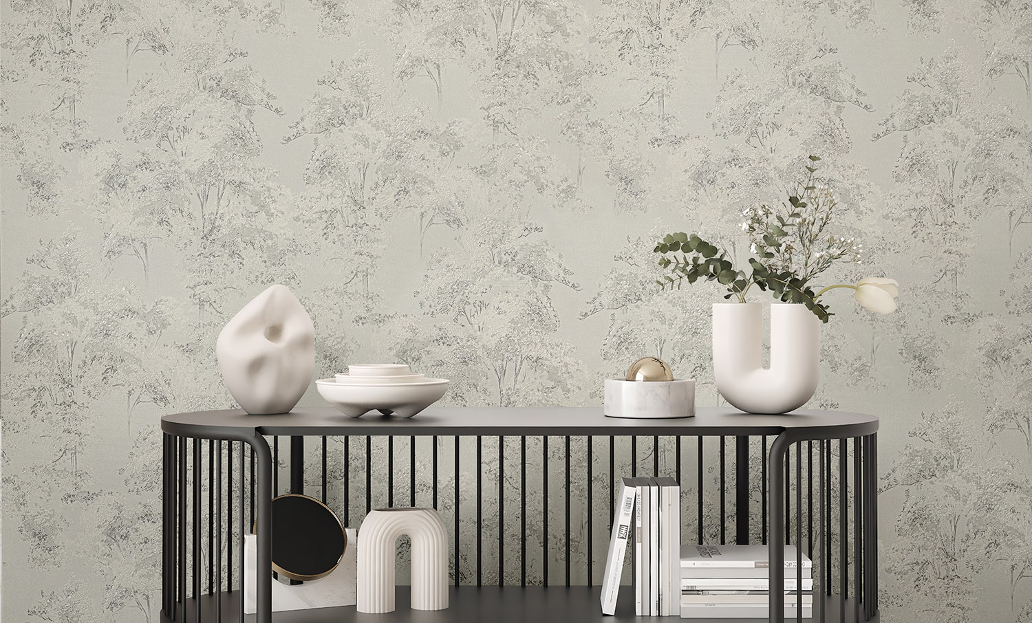 Bosco ТМ Ateliero - коллекция, где рисунок и фактура сливаются в единое художественное полотно. Фактурное полотно с богатой поверхностью визуально напоминает гобелен, но в современном, лёгком исполнении. Деревья словно вплетены в структуру, создавая визуальный рельеф и эффект объёма. На первый взгляд — утончённый монохромный орнамент. Но при ближайшем рассмотрении открываются детали: каждое дерево проработано с живописной точностью, каждый элемент словно нарисован мягкой кистью.