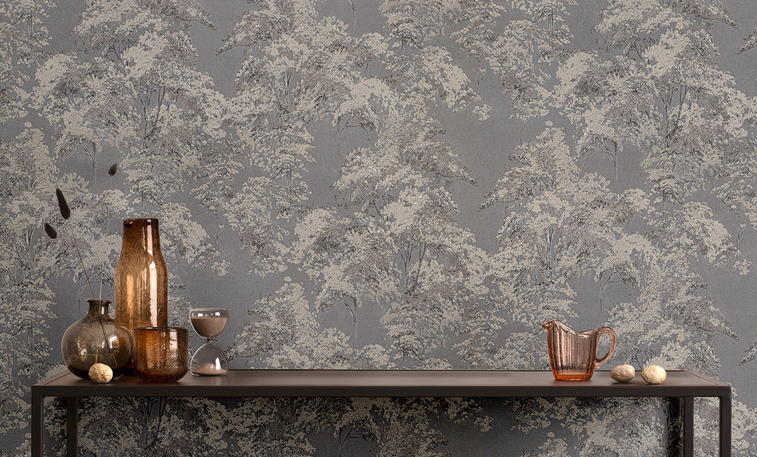 Bosco ТМ Ateliero - коллекция, где рисунок и фактура сливаются в единое художественное полотно. Фактурное полотно с богатой поверхностью визуально напоминает гобелен, но в современном, лёгком исполнении. Деревья словно вплетены в структуру, создавая визуальный рельеф и эффект объёма. На первый взгляд — утончённый монохромный орнамент. Но при ближайшем рассмотрении открываются детали: каждое дерево проработано с живописной точностью, каждый элемент словно нарисован мягкой кистью.