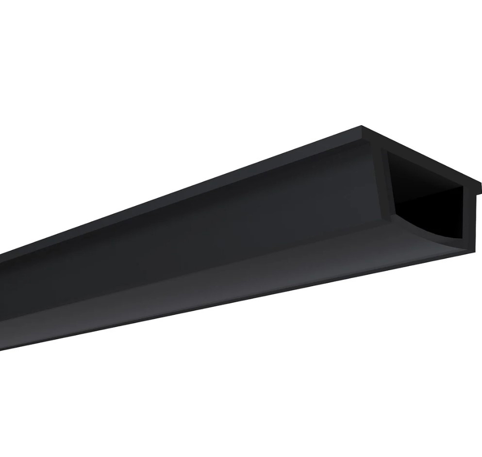 Алюминиевый профиль для светодиодной ленты 08-35-Ч по своей конструкции является накладным с возможностью изгибания под углом 120°, благодаря чему такой профиль можно не просто монтировать на плоскую поверхность, но и еще огибать определенные плоскости или делать различные декоративные решения нестандартных форм. Данная модель алюминиевого профиля имеет размер 15х5,6х2000мм, и внутри него можно разместить светодиодную ленту шириной до 10мм. В алюминиевый профиль уже установлен рассеиватель черного цвета, изготовленный из светорассеивающего поликарбоната. Такой рассеиватель пропускает 23 % светового потока и делает его более мягким и приятным для Ваших глаз, но в то же время не искажает передаваемые оттенки свечения и наиболее часто используется для организации декоративного освещения. Также в комплекте с профилем идут заглушки в количестве 2-х шт. и крепежи в количестве 4-х шт. Благодаря дробеструйной обработке профиль идеально гладкий, а нанесенная на поверхность профиля порошковая краска элегантного черного цвета защитит профиль от окисления и поможет подчеркнуть нетривиальный дизайн помещения.