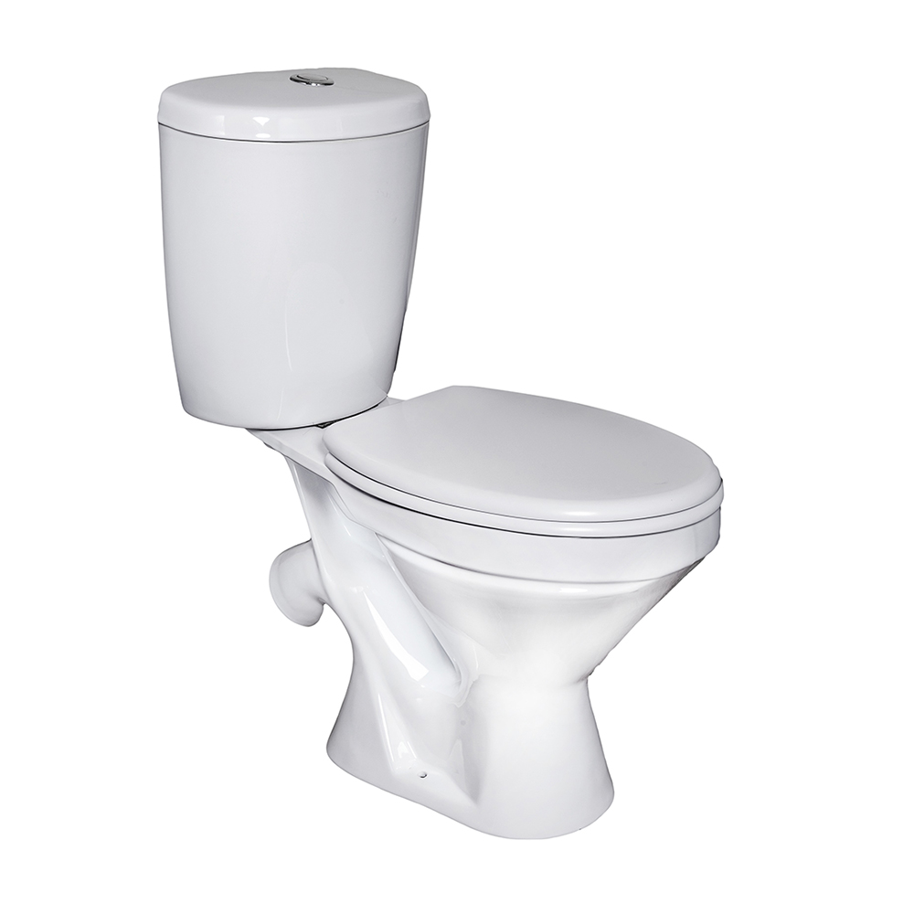 Унитаз-компакт "Бия" воронкообразный, с косым выпуском и цельнолитой полочкой, предназначен для бытового использования. Смывной бачок с нижним подводом воды. Однорежимный спускной механизм. Сиденье для унитаза из полипропилена. Расстояние между отверстиями крепления бачка к унитазу: 130 мм.
