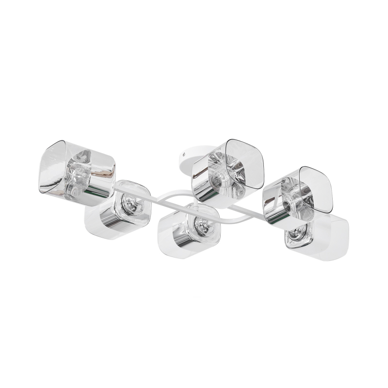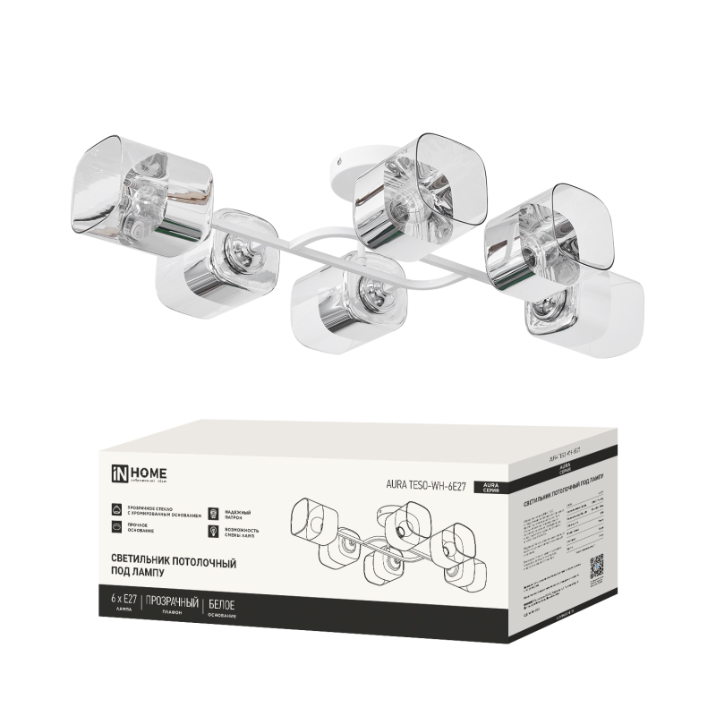 Светильник серии AURA TESO с квадратными плафонами оригинальной формы, где комбинация прозрачного стекла и блестящего хрома создает эффектное сочетание современности и изыска, которое идеально впишется в любое пространство. Надёжный патрон обеспечивает плотный контакт с цоколем лампы, что исключает возможность окисления. Благодаря сменным лампам вы можете подбирать цветовую температуру и яркость в вашем помещении.