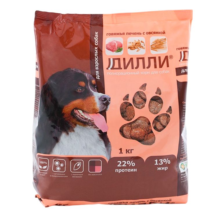 Корм для собак ДИЛЛИ Говяжья печень с овсянкой 1кг