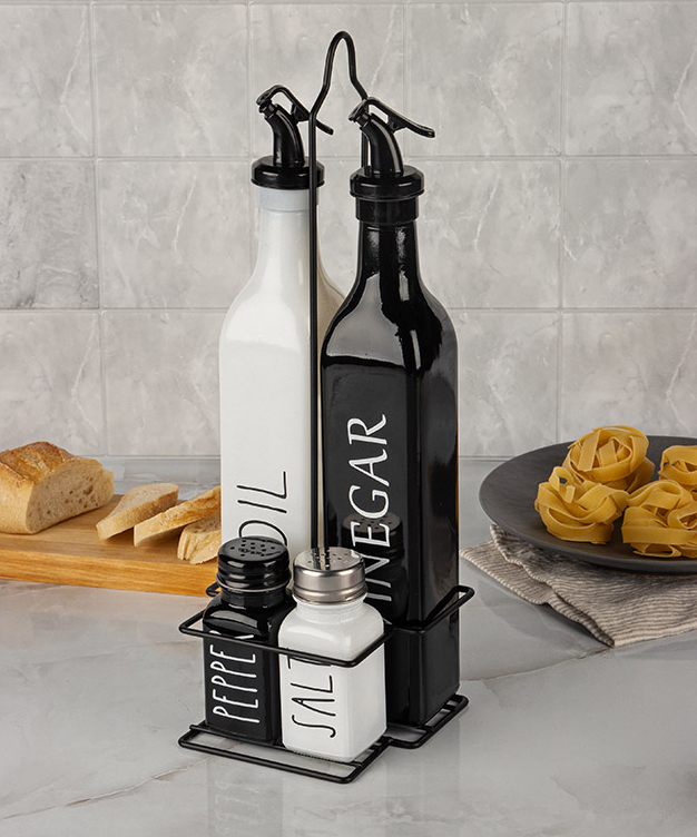 Набор для сервировки стола INSALATO состоит из пяти элегантных предметов, идеально подходящих для придания вашему столу изысканного вида. Комплект включает две изящные бутылки для масла и уксуса, а также две удобные емкости для специй. Все элементы размещены на деревянной подставке, изготовленной из натурального материала, что придает набору особую теплоту и натуральность. Этот набор станет прекрасным дополнением к вашей кухне или столовой, подчеркнув ваш вкус и внимание к деталям.