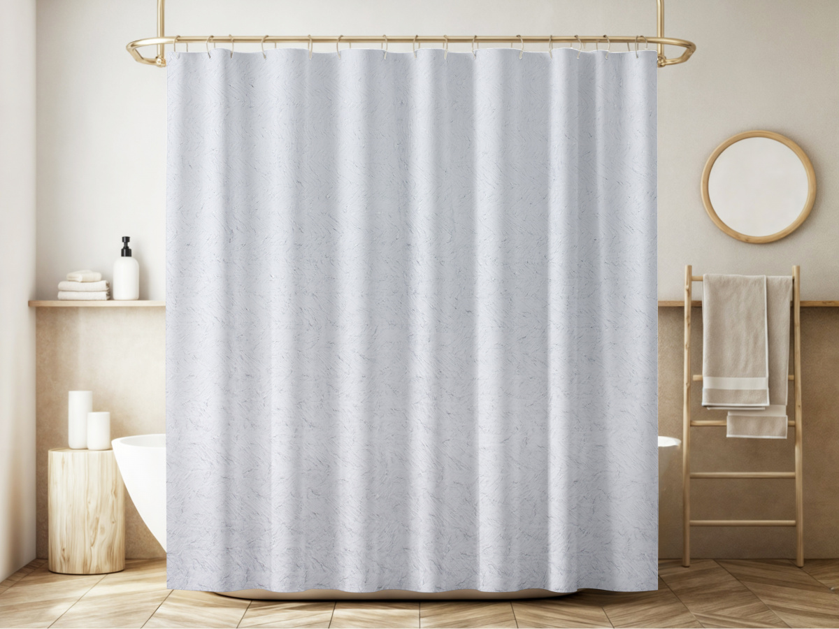 Создайте уют и стиль в вашей ванной комнате с этой элегантной шторой, сочетающей в себе практичность и изысканный дизайн. Верхний слой шторы из мягкой микрофибры с эффектом жатой ткани (75 г/м²) придает благородную текстуру, а основа из легкого полиэстера (40 г/м²) обеспечивает надежную защиту от брызг.