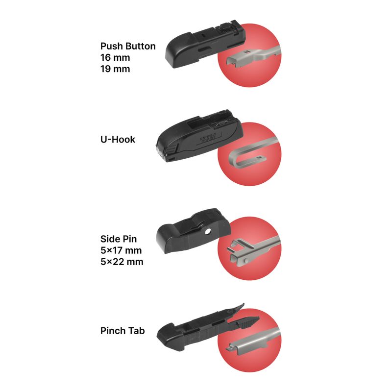 В комплекте с каждым стеклоочистителем Double Force имеется набор креплений, позволяющих установить их на большинство современных автомобилей.