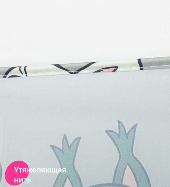 В комплекте 12 колец С-формы из прозрачного пластика. По верхнему краю расположены 12 прозрачных пластиковых люверсов. Штора имеет утяжеляющую нить по нижнему краю, которая позволяет избежать задирания ткани.