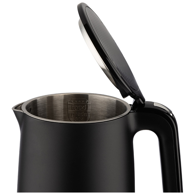 Объем 1,7 л. Двойной корпус. Закрытый нагревательный элемент из нержавеющей стали. Поворот на подставке 360°. Защита от работы без воды. Автоматический выключатель. Световой индикатор работы. Место для хранения шнура. Мощность 1500-1800 Вт. Длина шнура 76.3 см.