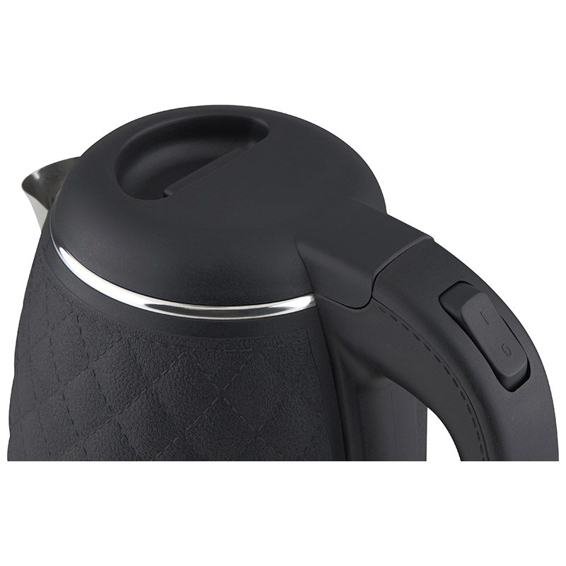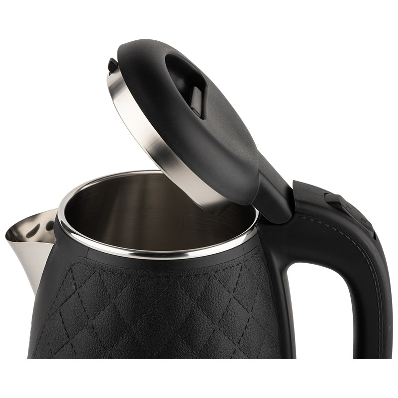 Объем 1,7 л. Двойной корпус (нержавеющая сталь внутри, пластик снаружи). Закрытый нагревательный элемент из нержавеющей стали. Поворот на подставке 360°. Защита от работы без воды. Автоматический выключатель. Световой индикатор работы. Место для хранения шнура. Мощность 1500 Вт.