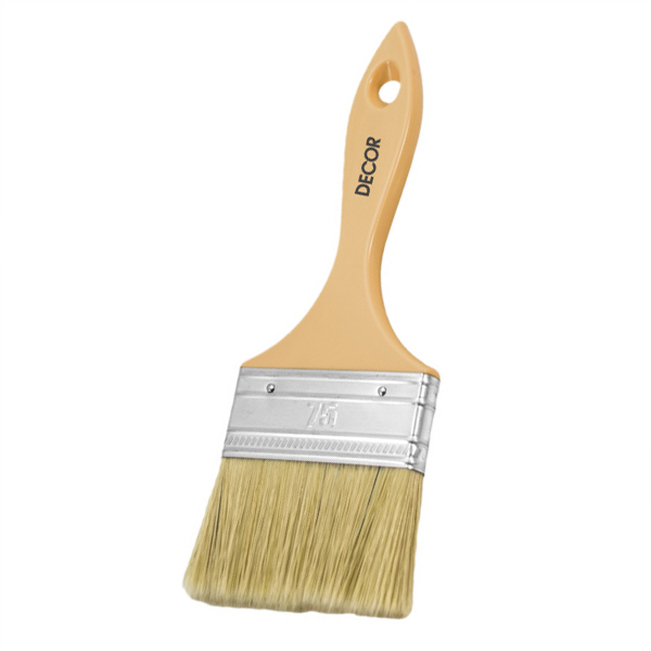 Кисть DECOR предназначена для работа с материалами: ПФ эмали, нитроэмали, обойные клеи, ЛКМ на водной основе, побелки, гидроизоляция. Смешанная щетина, в процессе работы возвращается в исходное положение, за счет гибкости и упругости отдельно взятых волокон. Щетина соответствует классу Premium, которая полностью имитирует натуральное волокно. Дизайн ручки кисти предотвращает скольжение изделия в руке. Кисть позволяет легко, качественно и быстро нанести материал на поверхность.