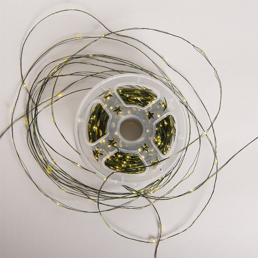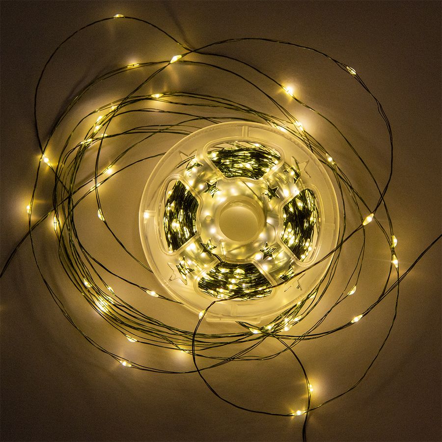 Гирлянда Нить – волшебное сияние для масштабных декораций! Эта длинная гирлянда – целых 100 метров мерцающего теплого света! 1000 светодиодов на прочной тройной проволоке зеленого цвета создают эффект парящих звездочек: после включения провод становится практически невидимым, оставляя только магическое свечение.