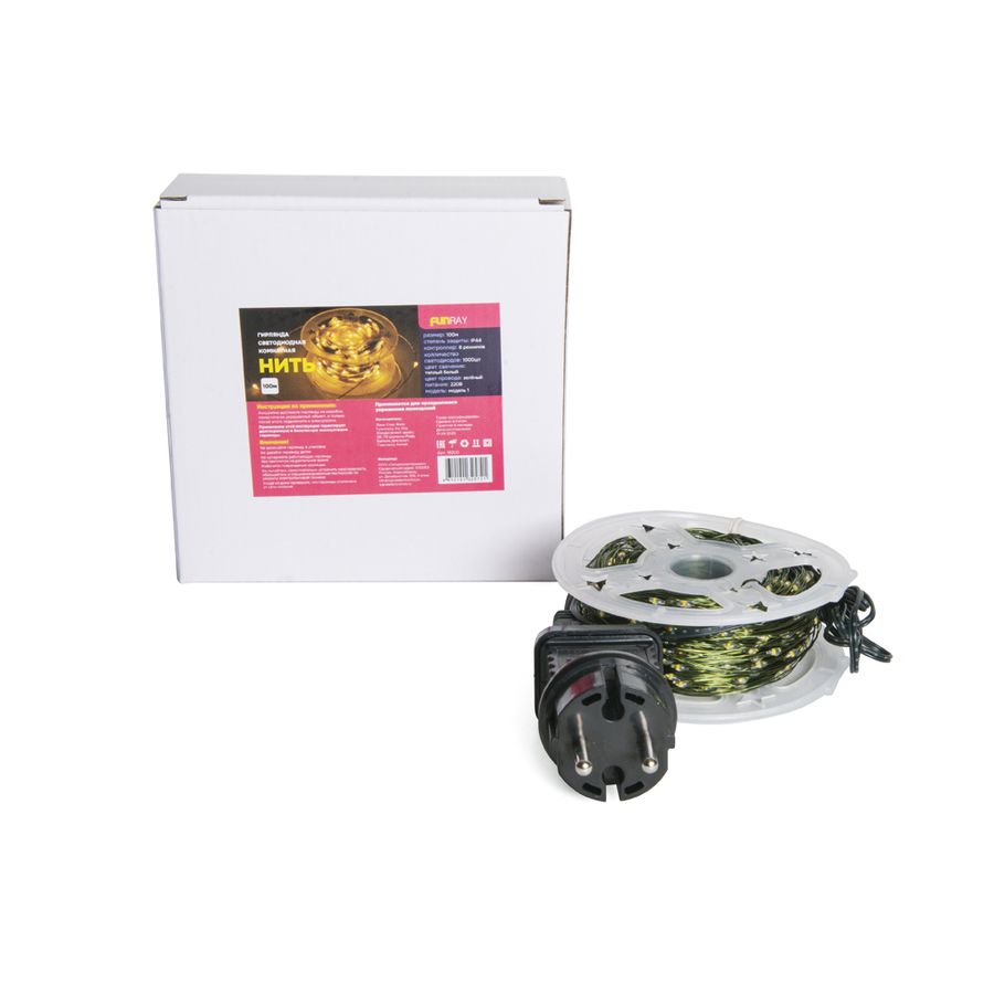 Электрогирлянда FUNRAY Нить модель 1 1000 ламп тёплый белый свет 100м
