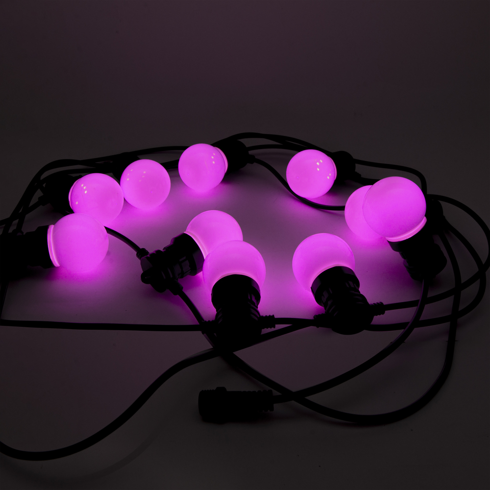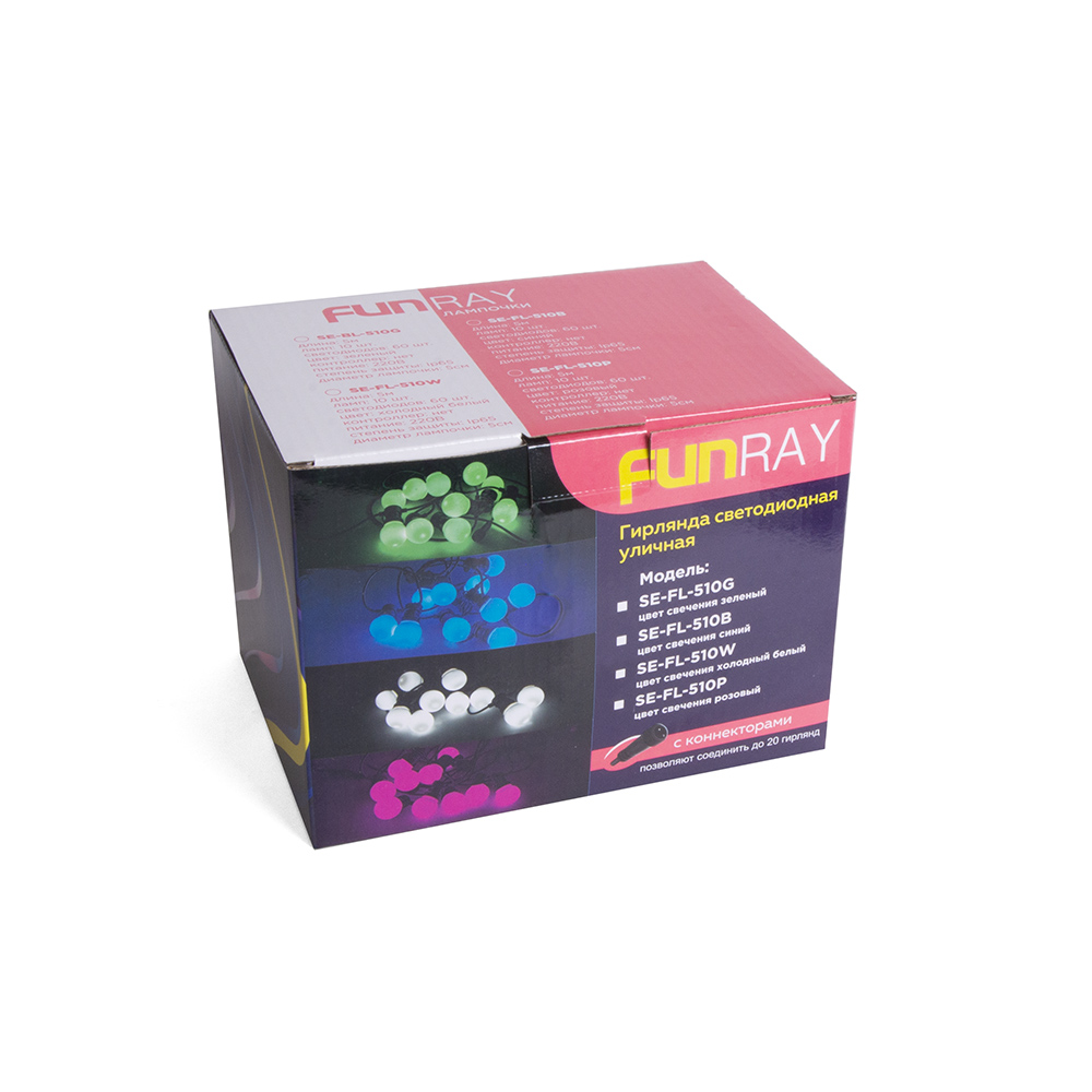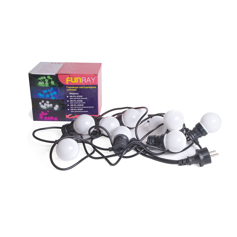 Больше цвета! Уличная гирлянда в неоново - розовом цвете Funray Лампочки SE-FL-510P. Эта яркая модель – то, что нужно, чтобы добавить красок в свой уличный декор. Длина гирлянды 5 метров, на ней расположены 10 матовых ламп, которые после включения начинают светиться красивым розовом цветом. Для соединения нескольких гирлянд в одну предусмотрен коннектор (соединитель). Он позволяет соединить до 5 гирлянд. Создавайте уютное пространство вместе с гирляндами Funray!