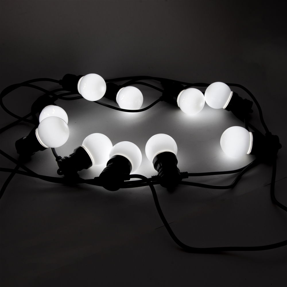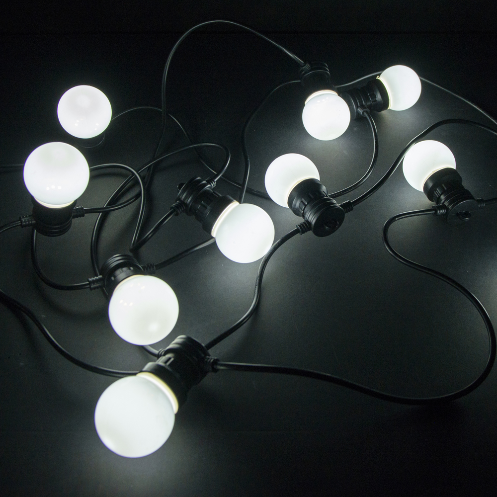 Уличная гирлянда в холодном белом цвете Funray Лампочки SE-FL-510W. Эта яркая модель – то, что нужно, чтобы добавить красок в свой уличный декор. Длина гирлянды 5 метров, на ней расположены 10 матовых ламп, которые после включения начинают светиться красивым холодным белым цветом. Для соединения нескольких гирлянд в одну предусмотрен коннектор (соединитель). Он позволяет соединить до 5 гирлянд. Создавайте уютное пространство вместе с гирляндами Funray!