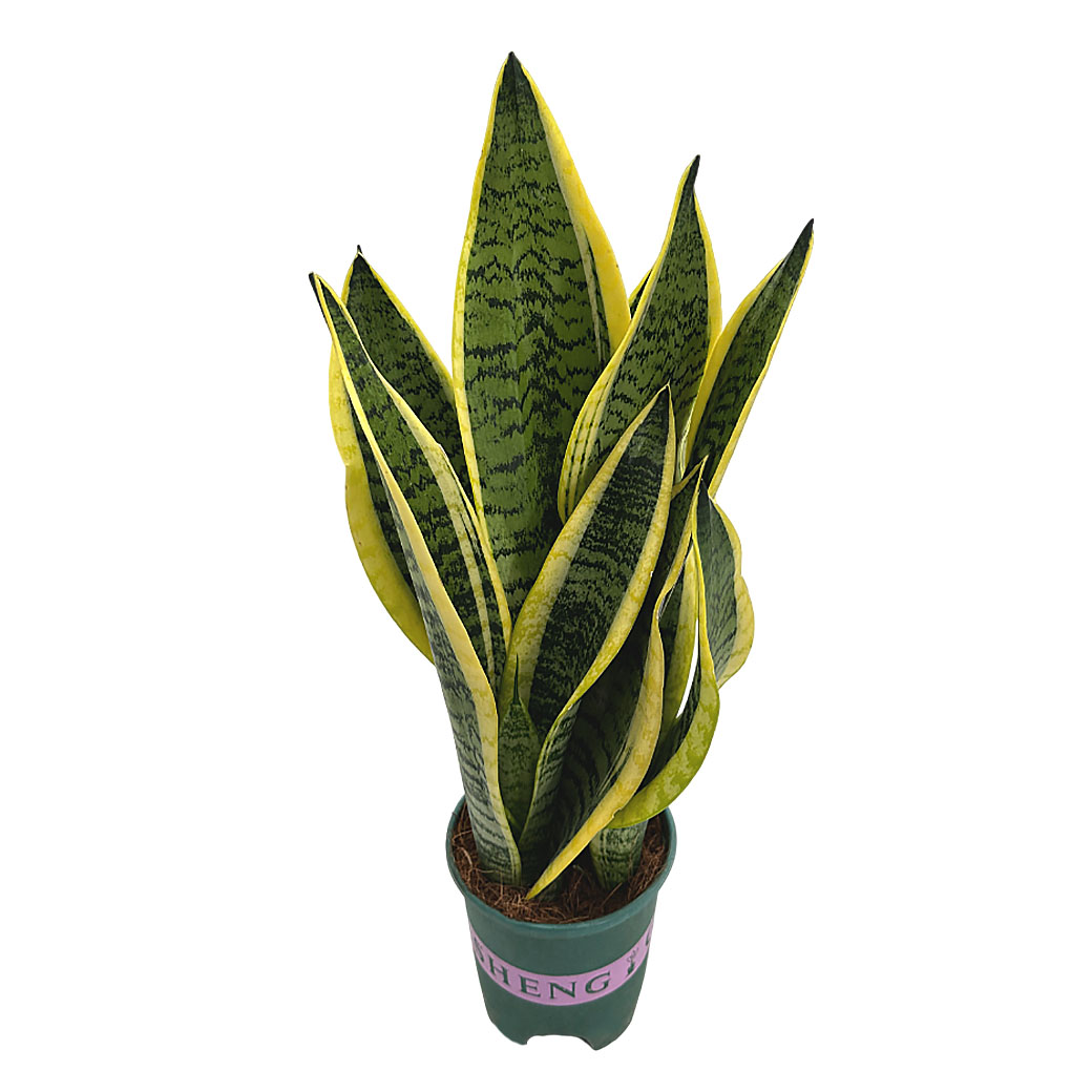 Сансевиерия Лауренти, которую также называют «Тещин язык» или «Щучий хвост», — очень выносливое растение. Поливать её нужно редко, только когда почва полностью высохнет: летом раз в 7–10 дней, а зимой достаточно и одного раза в месяц. Она хорошо себя чувствует на свету, даже под прямыми лучами солнца. Для пышной листвы с марта по октябрь удобряйте её раз в месяц подкормкой для декоративно-лиственных растений.