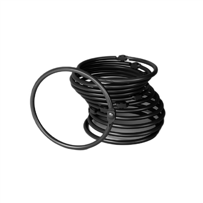 Кольца изготовлены из прочного металла с надёжным цветным покрытием, обеспечивающим защиту от коррозии. Каждое кольцо имеет внутренний диаметр 53 мм, внешний - 57 мм, что делает их совместимыми с различными карнизами, оснащены механическим защелкивающимся замком, который обеспечивает их легкое открытие и крепкое надежное закрытие, а также позволяет крепить шторы без необходимости снимать сам карниз.