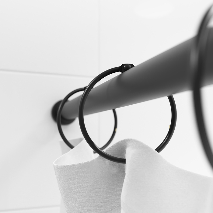 Кольца подходят для штор в любых помещениях дома: гостиной, спальне, на кухне или в ванной. В комплекте — 12 колец. Для ухода рекомендуется использовать салфетку или неабразивную сторону губки с мягким моющим средством. После очистки следует удалить остатки влаги с поверхности.