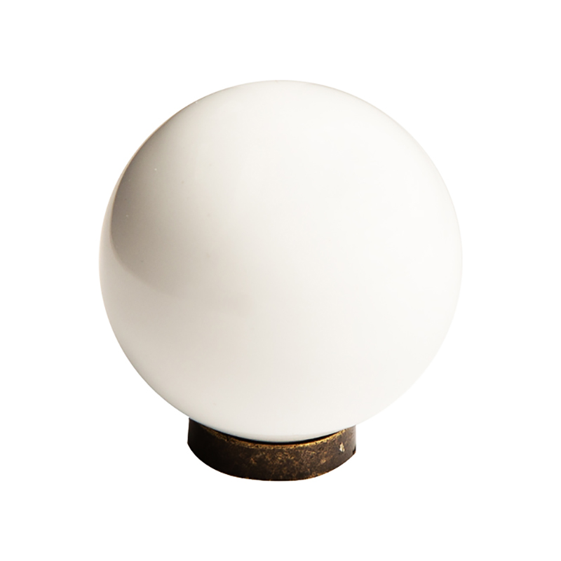 Мебельная ручка в форме шара с гладкой белой поверхностью на компактном основании под бронзу. Лаконичный дизайн делает её универсальной для шкафов, комодов и тумб, добавляя интерьеру аккуратный и стильный акцент. Прочная и удобная в использовании. Её сдержанная элегантность гармонично впишется в интерьер, выполненный в любом стиле - от классики до модерна.