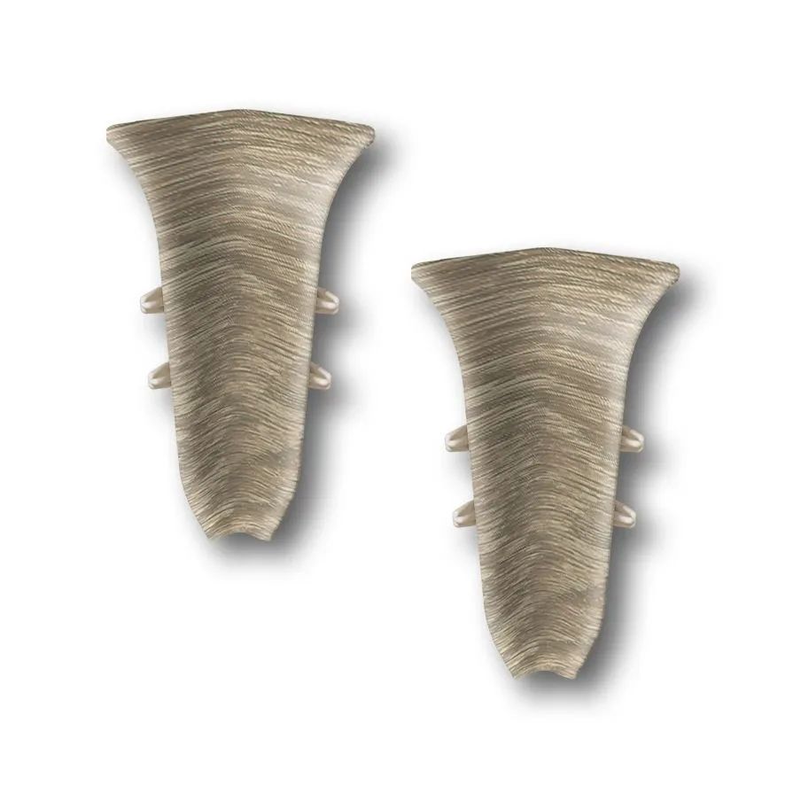 Угол внутренний — декоративный элемент, которой потребуется купить для монтажа пластикового напольного плинтуса. Обычно в помещении четное количество углов, поэтому этот аксессуар продается комплектом из двух штук. Изделие устанавливают в последнюю очередь, уже после того, как плинтус прикрепят к стене. Оно имеет конструкцию, позволяющую поставить его на место без применения клея или самореза, простым нажатием сверху вниз.